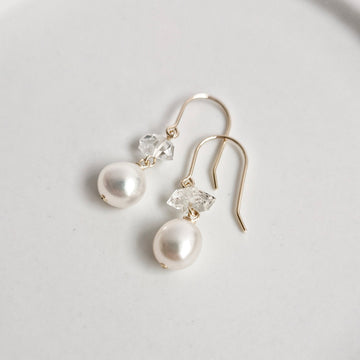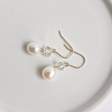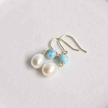 Esme Freshwater Pearl w/Turquoise Earrings / 14k Gold-filled