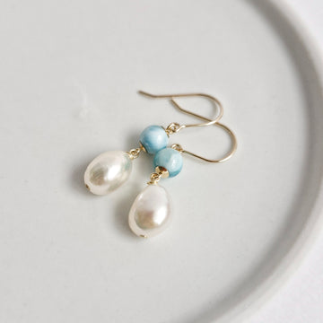 VALEN Freshwater Pearl Earrings w/Turquoise | 14k Gold-filled